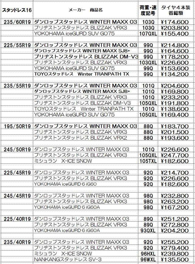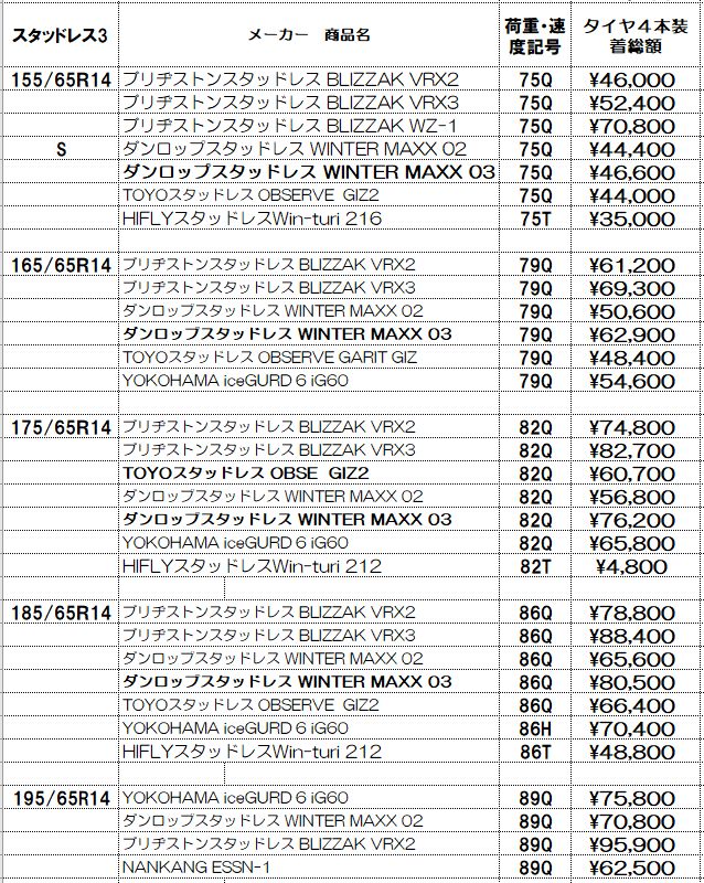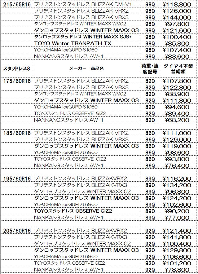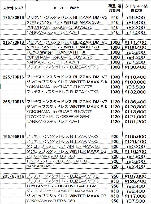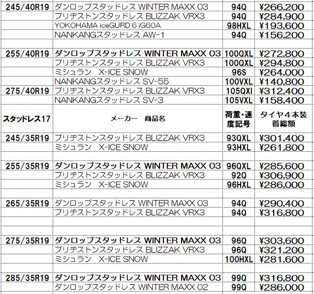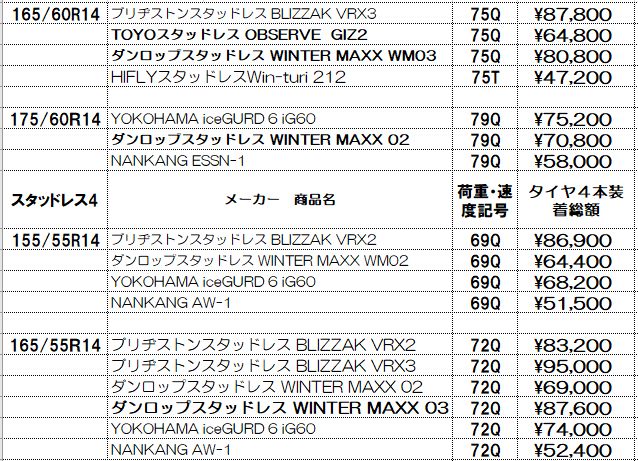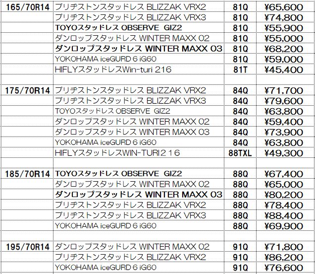 スタッドレスタイヤ4本セット工賃、消費税、全費用込みの総額です。